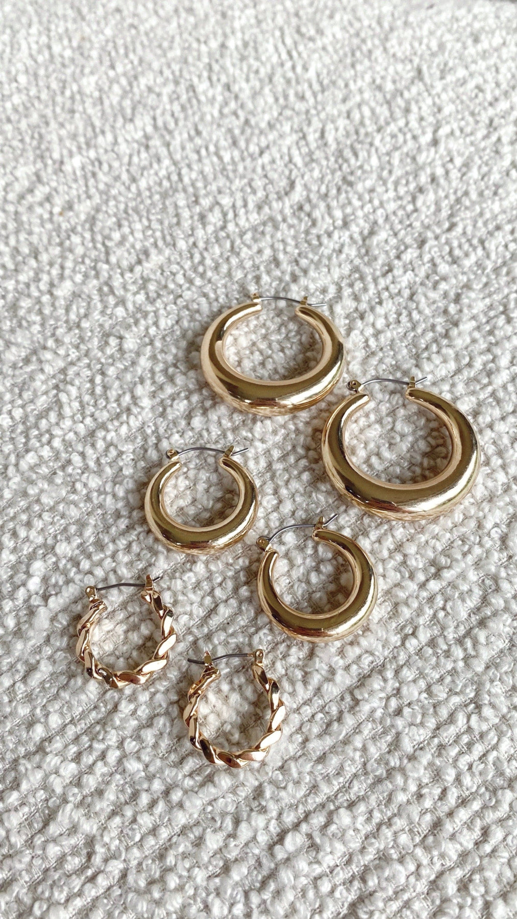 The classic hoop set is all a girl needs - consists of a mini hoop with twist detail and two larger staple chunky hoops