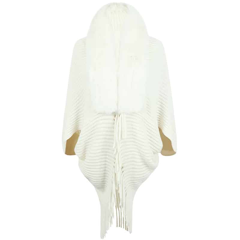 Poncho with fur collar and tassels