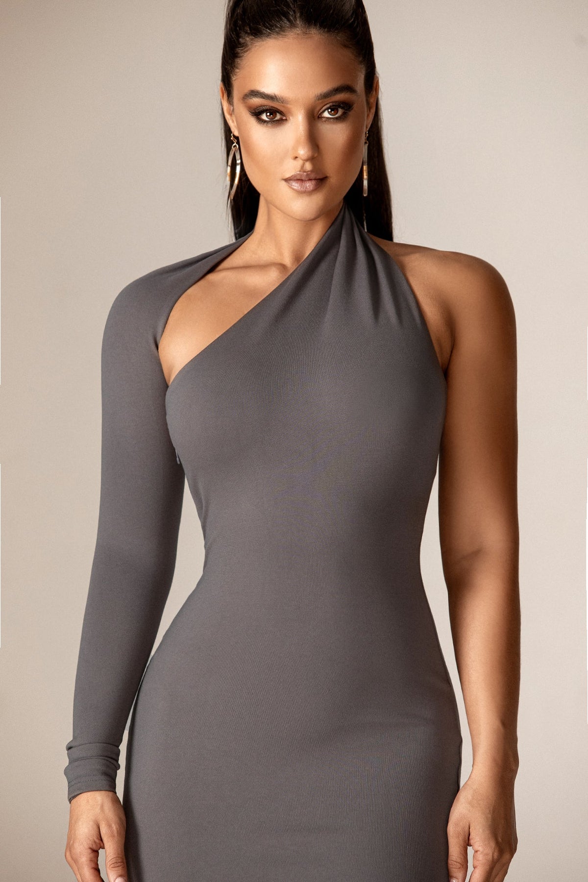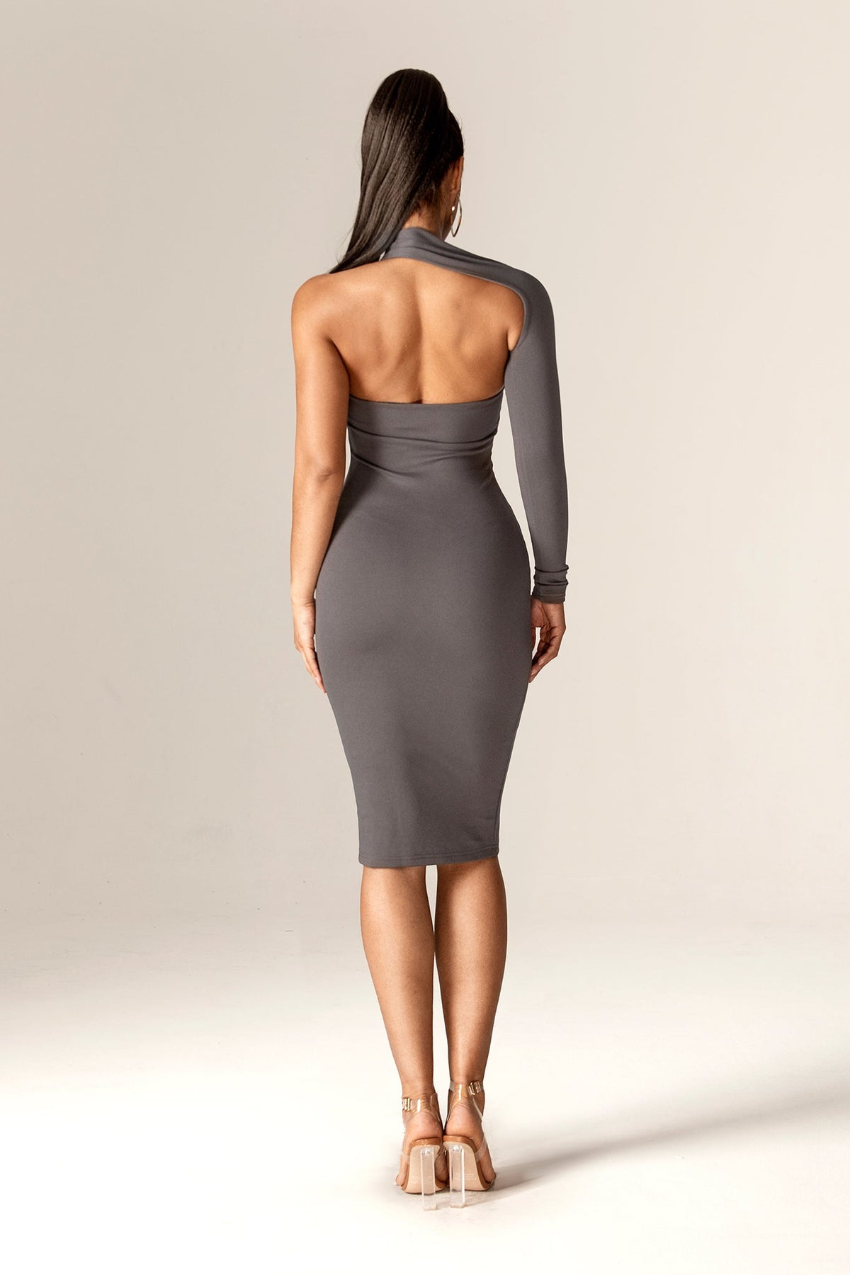 Dasha Asymmetrical Modern Midi Dress (Gray)