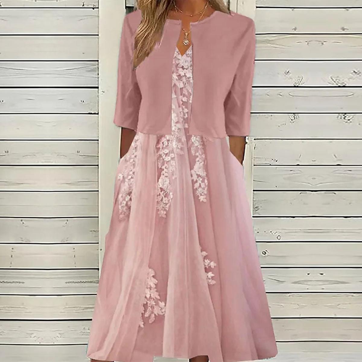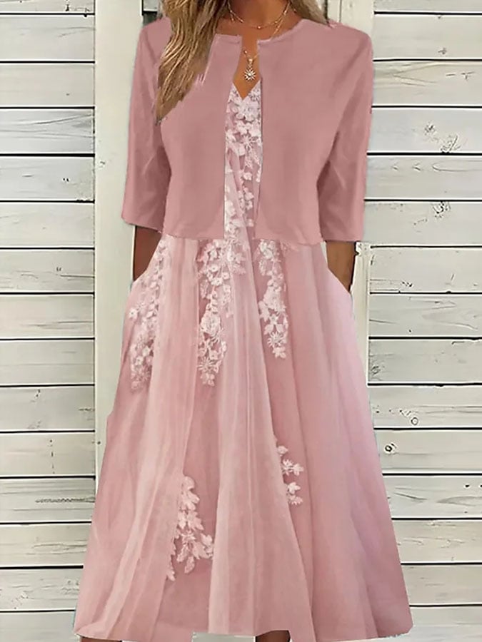 Pink Side Pocket Midi Dress With Jacket