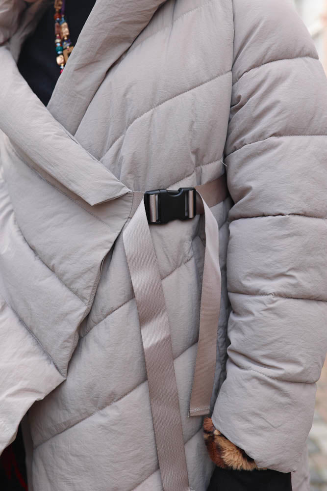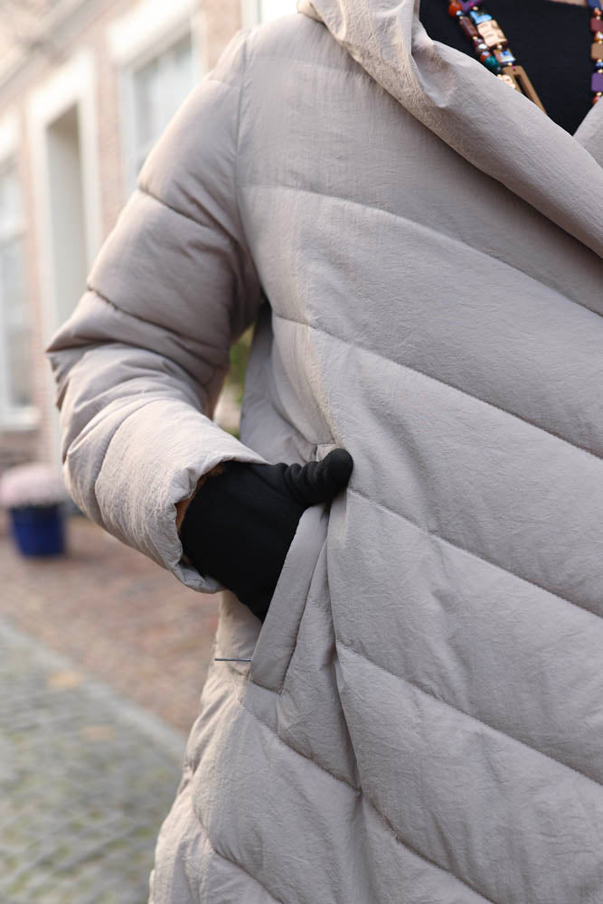 Estio is a very cool, loose-fitting coat with striking sloping fronts. I