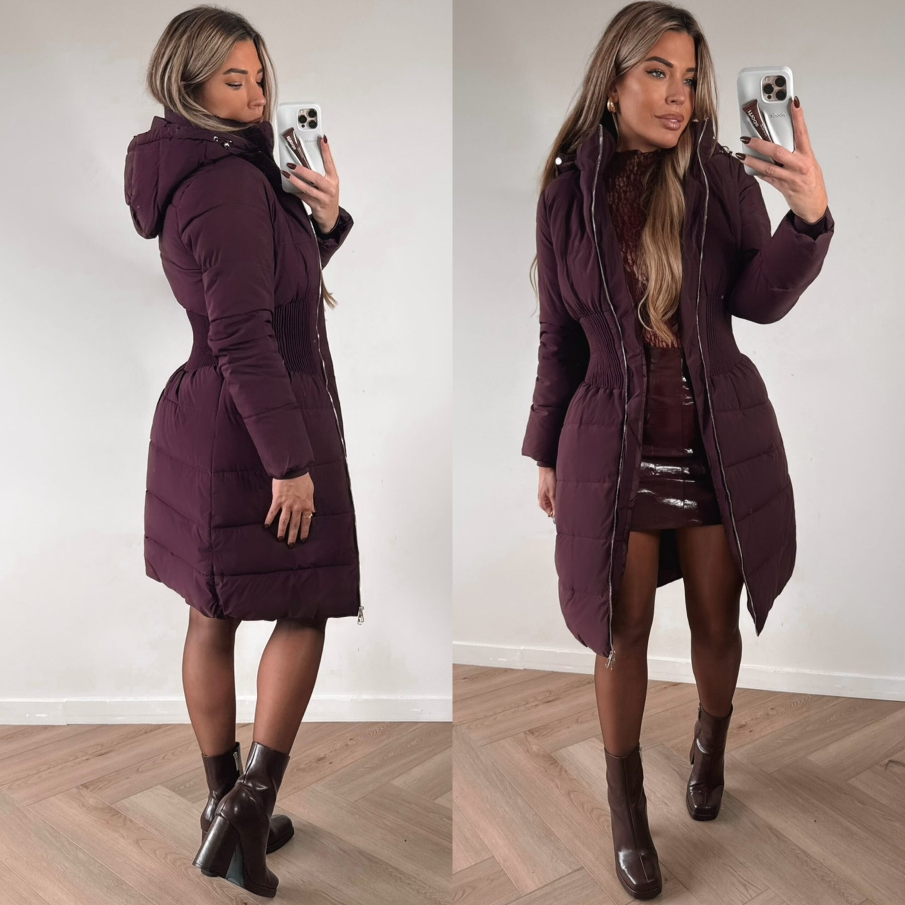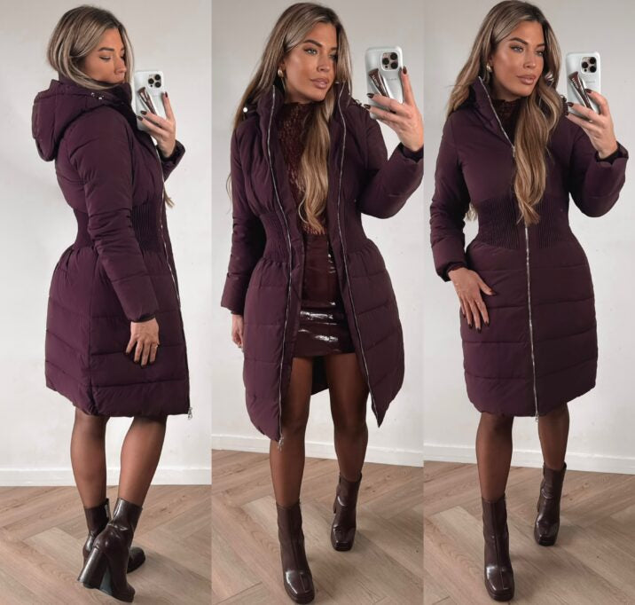 Beautiful winter coat with a very fitted detail at the waist.