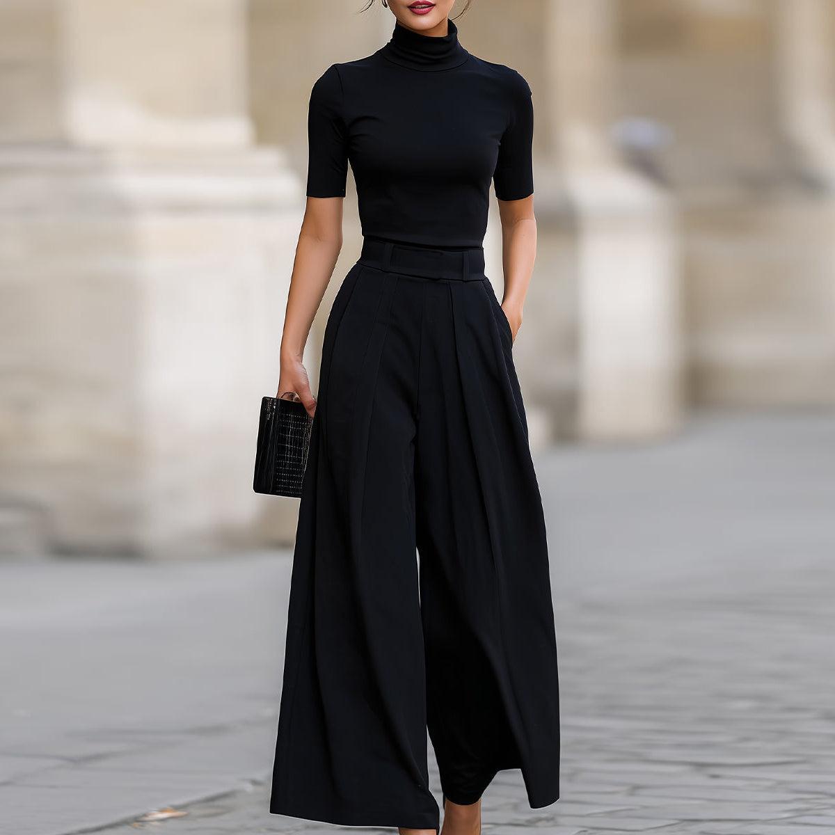 Elevate your essentials with this sophisticated two-piece set featuring a sleek black mock neck top paired with coordinating bottoms. The mock neck design provides a polished, contemporary silhouette while maintaining comfort for everyday wear. The plain aesthetic ensures versatility—layer it effortlessly under blazers for professional settings or style it casually with your favorite accessories. Crafted for those who appreciate minimalist elegance, this set delivers timeless appeal without compromising on quality or wearability.