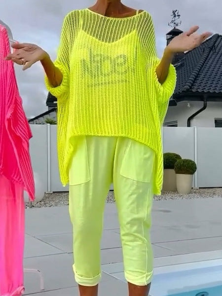 Letter-print Jumpsuit and Cutout Cover-up Casual Set