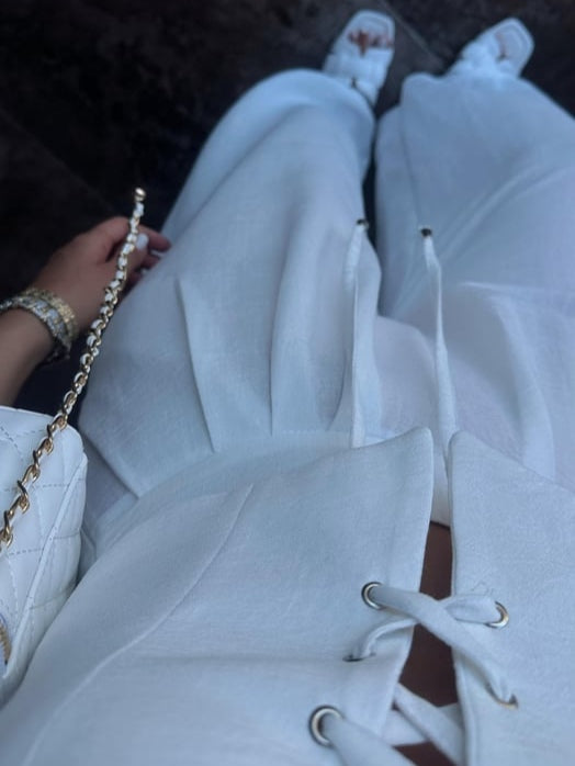 Linen Blend Tie Front Camisole Two-Piece Set