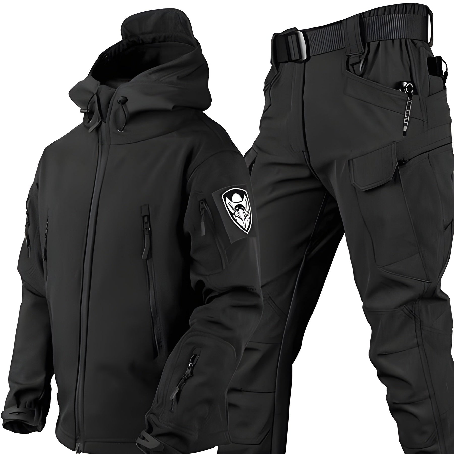 This two-piece set blends a sleek, functional design with practical detailing. Ideal for outdoor activities, travel, or casual wear that demands both style and performance.