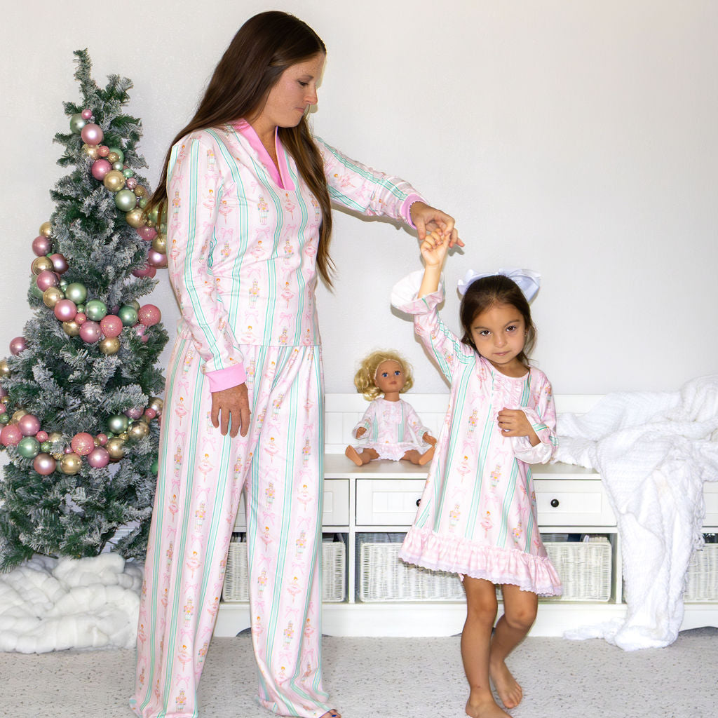 Snuggle up in holiday cheer with our Nutcracker Lounge Set! Designed for girls and women, this playful V-neck ensemble offers a relaxed fit that's as comfy as it is festive. Curl up with cocoa, unwrap presents, or simply lounge around in this merry must-have that brings nutcracker magic to your holiday relaxation time!