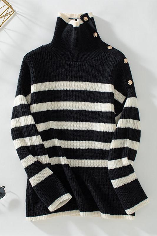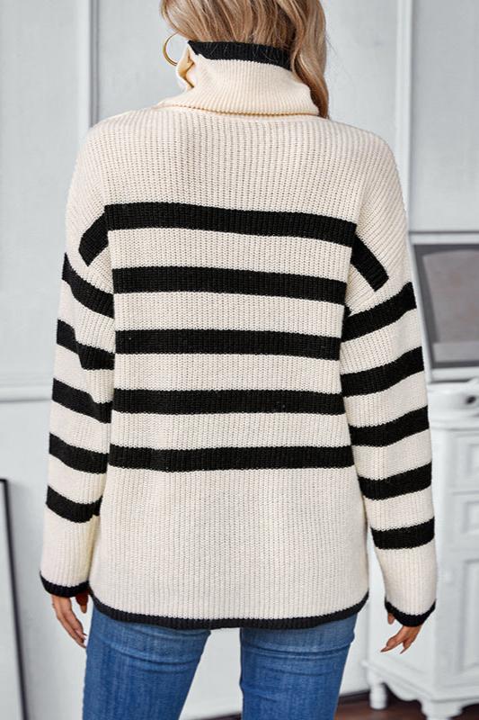 This stylish sweater has a turned-up collar and long sleeves, making it a perfect garment for different occasions. The soft polyester material feels comfortable and the loose fit offers plenty of freedom of movement. With an attractive striped pattern, this sweater is both casual and chic, ideal for holidays, work or just a relaxing day.