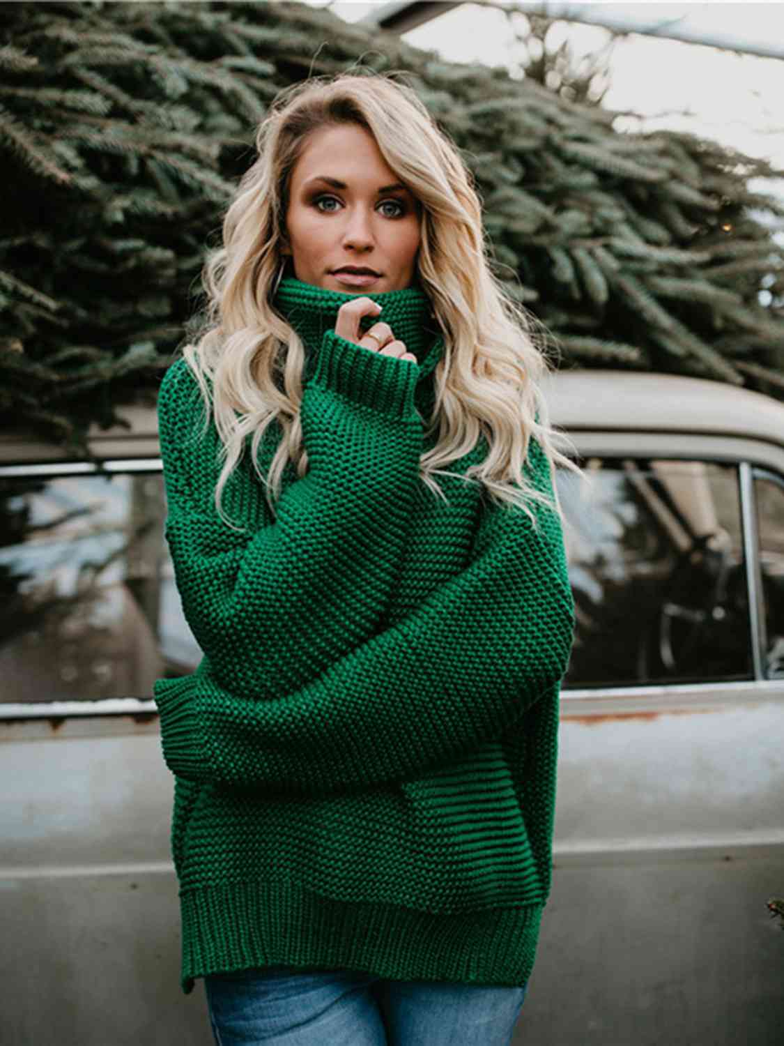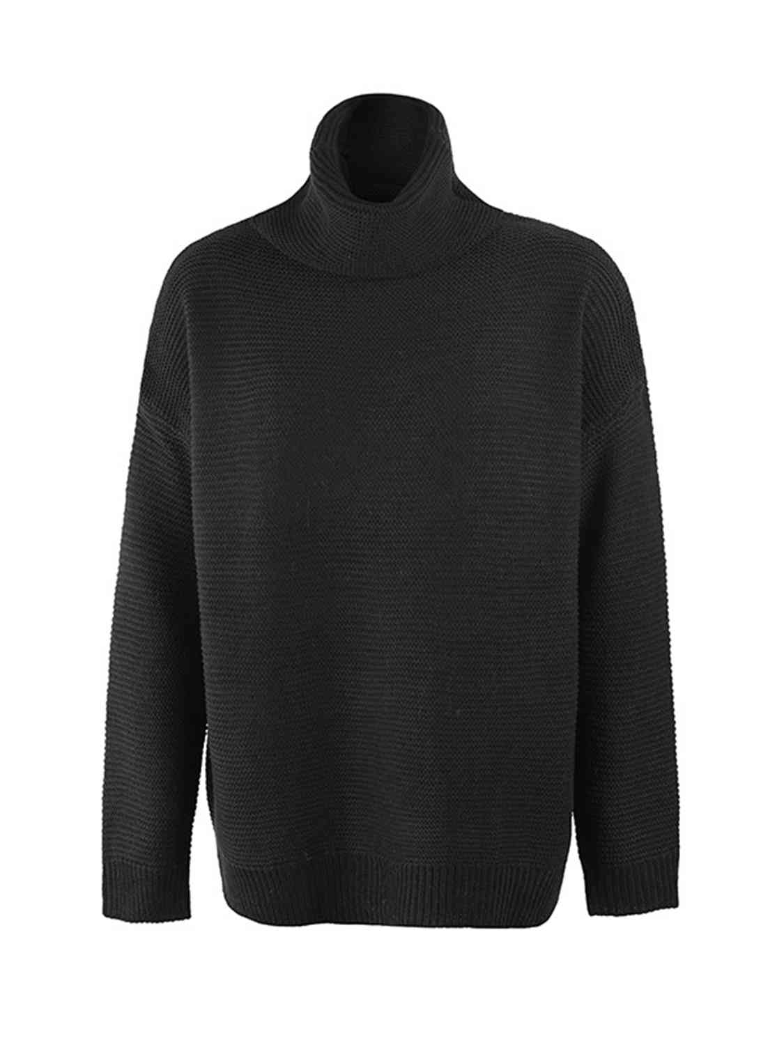 Turtleneck Dropped Shoulder Slit Sweater