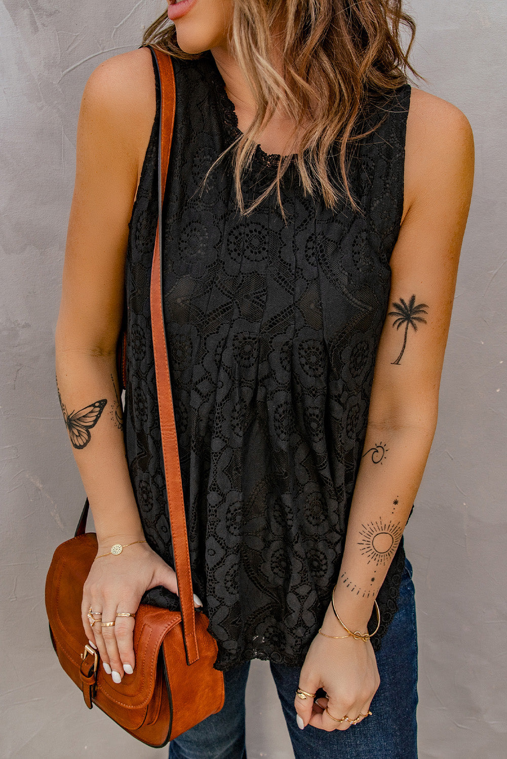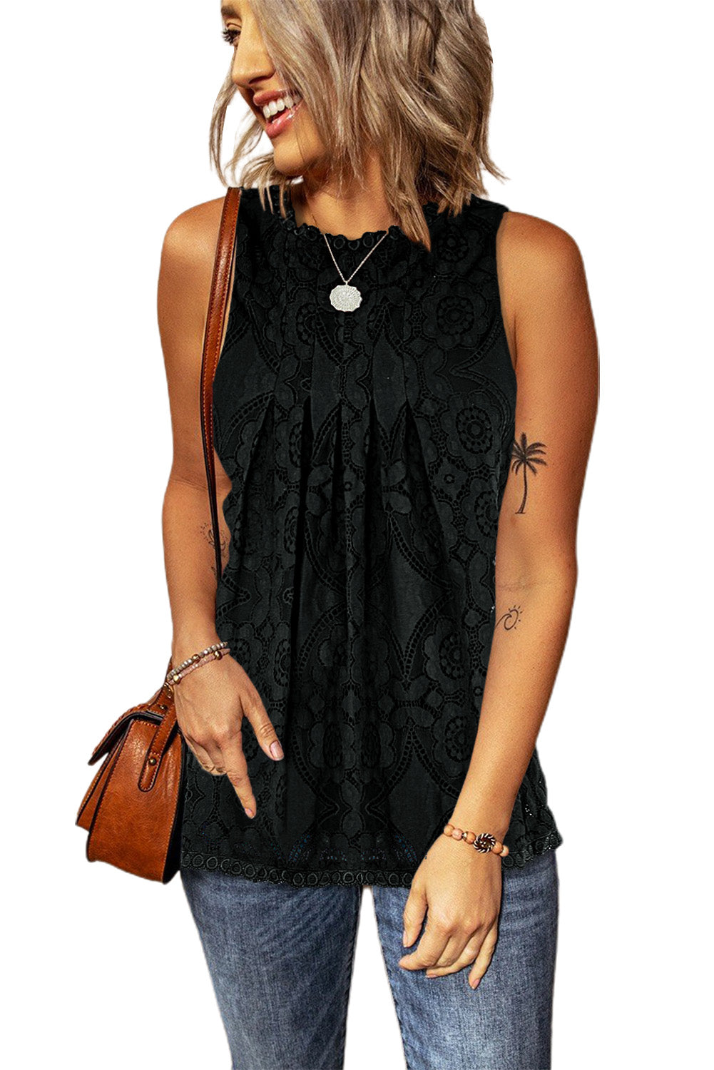 Lace Hollow Out Sleeveless T-Shirt